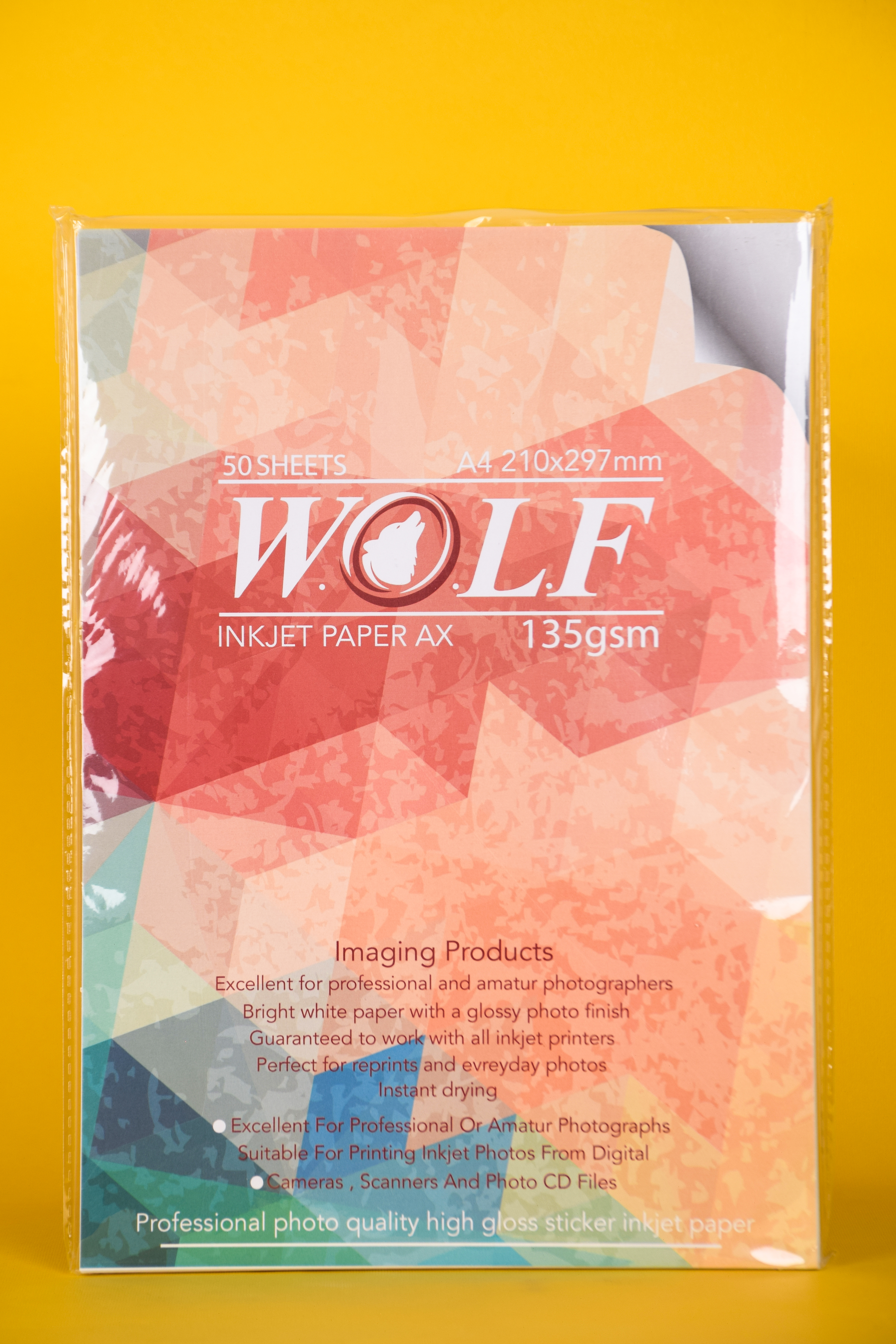 کاغذ گلاسه چسبدار ولف سایز A4 برای استفاده در چاپ حرفهای تصاویر، طراحی لیبل، برچسبهای تبلیغاتی و بستهبندی مناسب است و کاربرد فراوانی در دفاتر، فروشگاهها و محیطهای خانگی دارد.